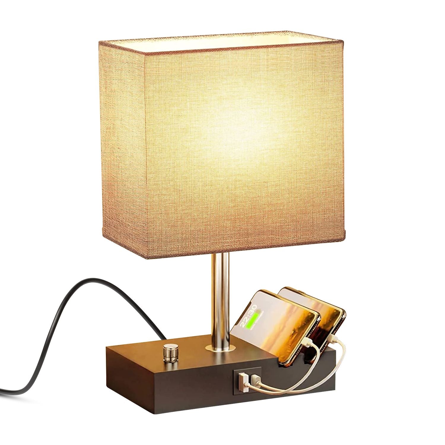 Gominimo Bedside Lamp Vintage 3 Dimmable Light Table Desk with Phone Stand Grey