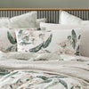 Introducing the 250TC Leeton Eucalyptus Cotton Sateen Quilt Cover Set by Logan and Mason, where the beauty of Australian eucalyptus takes center stage. Delicate eucalyptus sprigs with flowers grace a white textured linen base on the front in eucalyptus, cream, pink, and green hues, while the reverse showcases a soothing textured sage and white floral design, creating a fresh and nature-inspired ambiance for your bedroom.