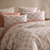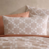 Indi Stone Cotton Jacquard Quilt Cover Set by Platinum Collection offers a modern reinterpretation of the classic check pattern. Its dramatic design combines small and large squares, enhanced by woven stripes and textures for extra depth. The warm, natural colour palette of stone and taupe ensure seamless integration into your interior, adding a touch of contemporary style to your space. Finish the look with coordinating accessories.