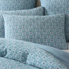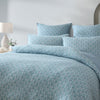 Santa Fe Teal Cotton Jacquard Quilt Cover Set by Platinum Collection featuring a crinkle texture in tranquil teal, blue, and white tones, adorned with a textured repeat pattern for a touch of Coastal charm. The distress-textured fabric adds character, and the reverse side, dyed to match, completes this stylish ensemble for a serene and textured bedroom retreat. Finish the look with coordinating accessories.
