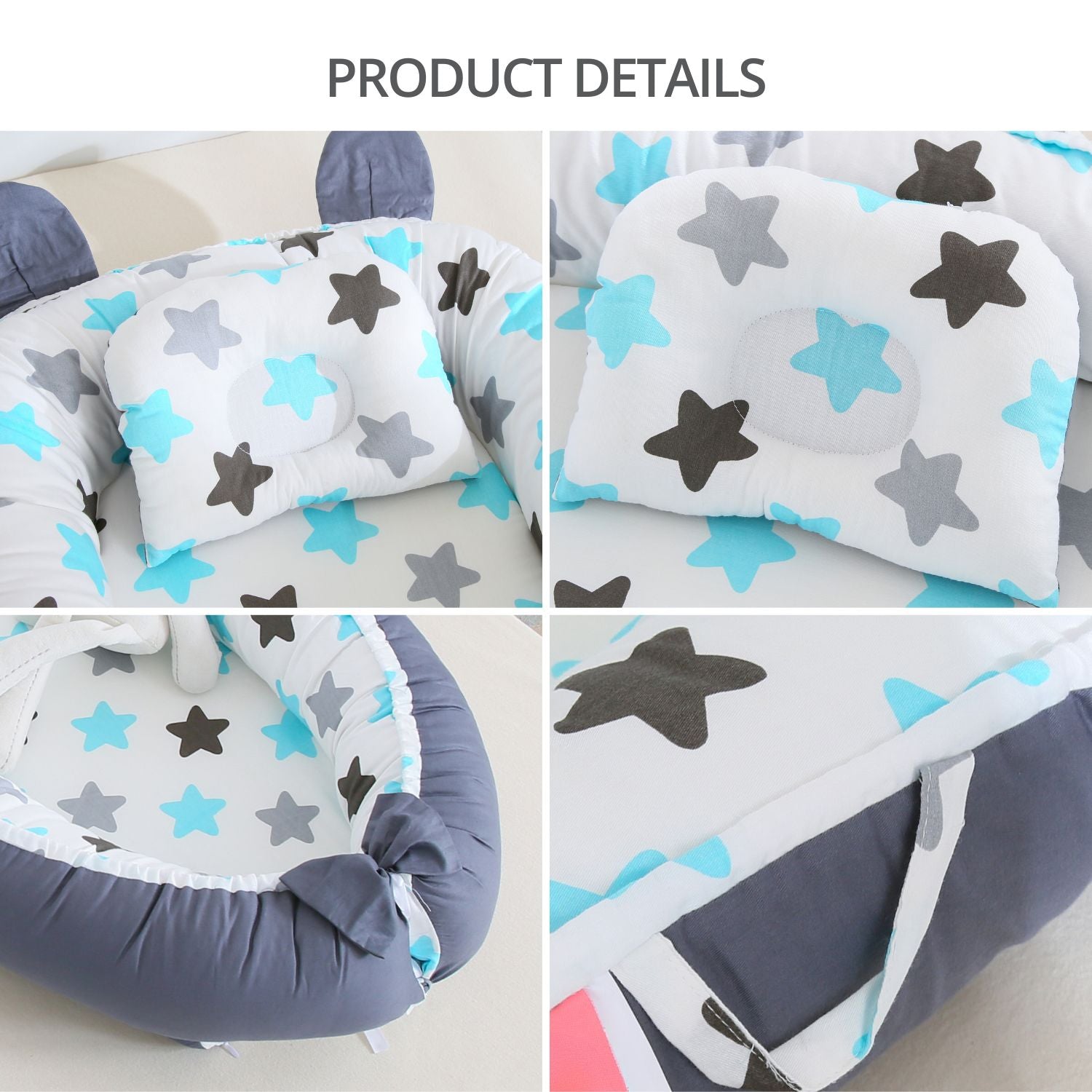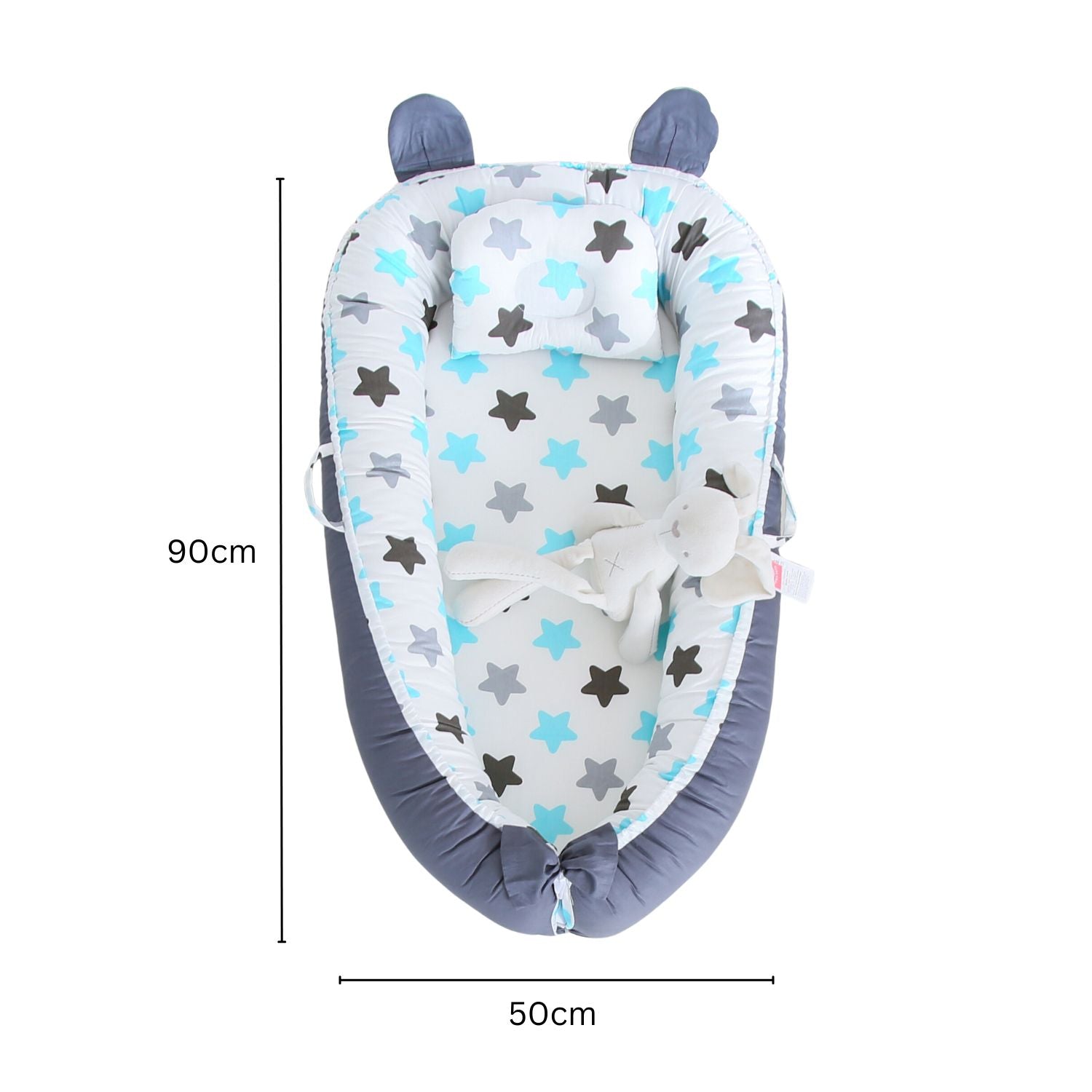 The Gominimo Portable Baby Lounger & Baby Nest with Pillow (Stars) is a product designed to provide a comfortable and safe sleeping environment for babies.