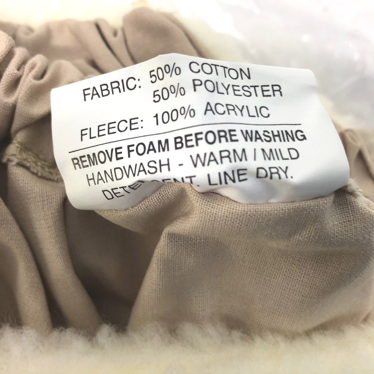 Fleece 100% acrylic, fabric 50% cotton / 50% polyester