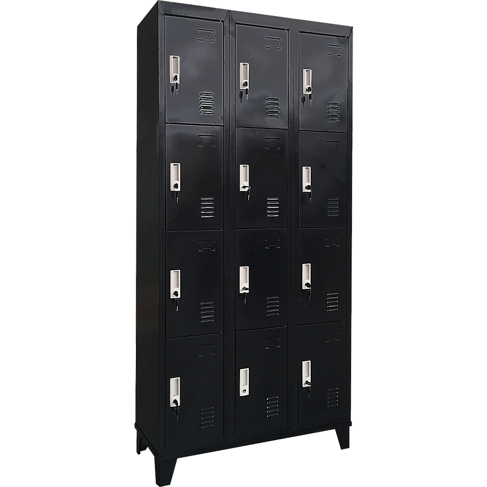 A full twelve lockers are arranged in a 3 x 4 grid, each providing ample storage space for a wide range of personal belongings. When you have multiple-user storage needs, this is your answer.
