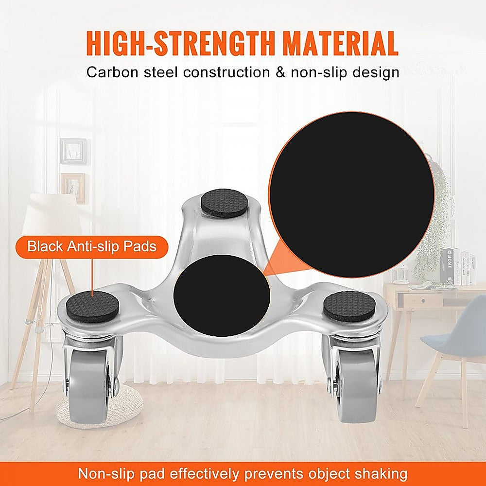 Our furniture mover dolly is crafted from top-quality materials. The main body is made of durable metal that resists corrosion, ensuring your cargo stays secure during transportation.