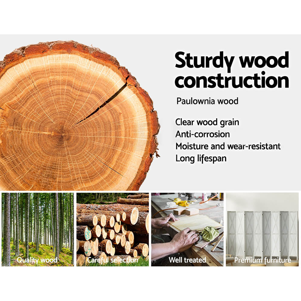 Need some privacy? Or want to make more practical use of space in your home? With our Artiss room dividers, you can create private pockets and zones or divide a large room into separate areas in minutes. It creates an illusion of different rooms without the need to add a solid wall. You can choose from our 3, 4, 6, or 8-panel room dividers in brown and white tones. They feature solid paulownia wood construction, which ensures longlasting use and ultimate durability. Our room dividers come with eco-friendly, non-toxic, and water-based paint that offers good resistance against cracks, fading, water, and corrosion. Additionally, their lightweight and portable design makes it easy to move from one room to another effortlessly. The panels of our room divider can also be folded, and the two-way metal hinges ensure sturdiness and greater stability. You can even assemble the panels easily. Purchase our room dividers and create a private area wherever you like.