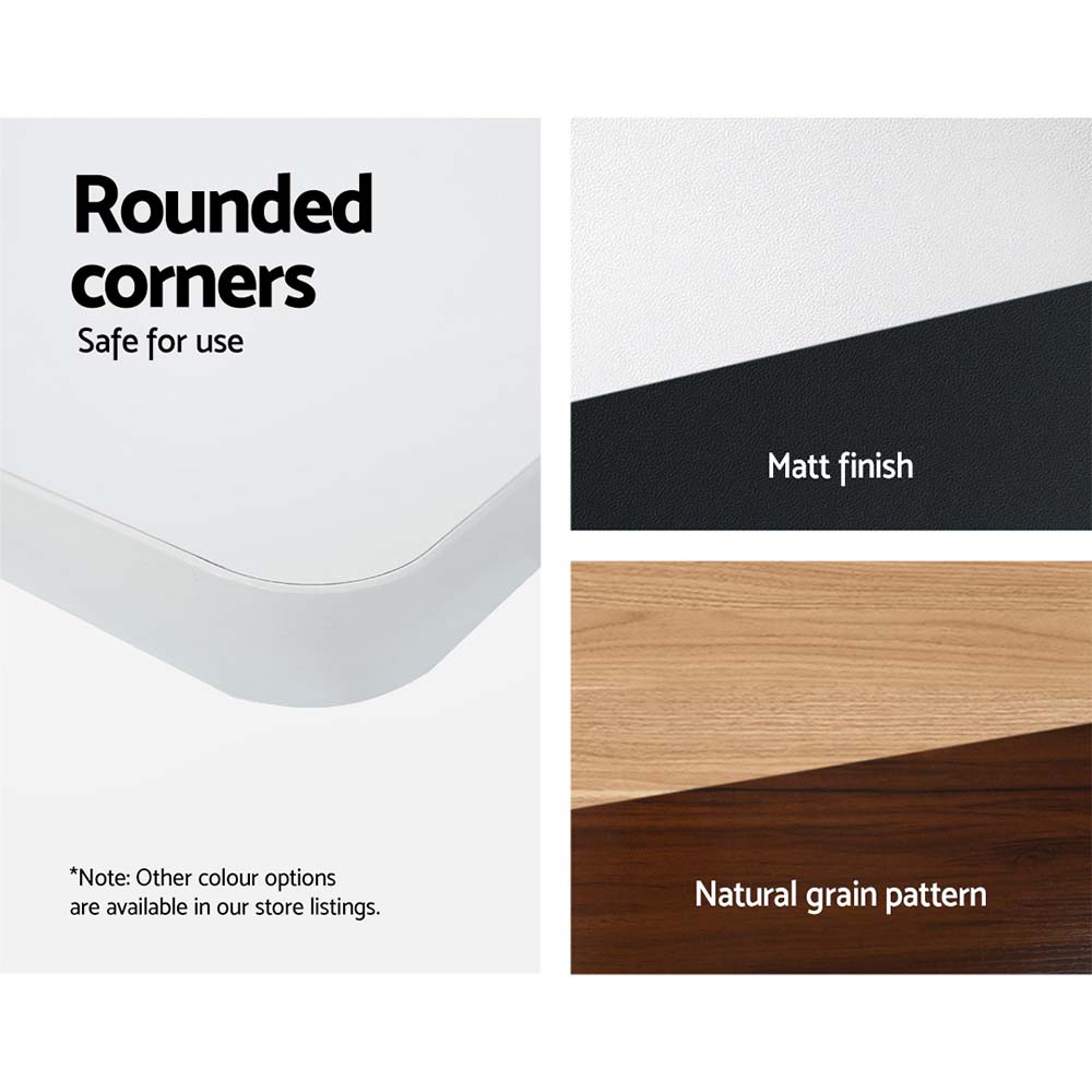Designed to fit perfectly with our Artiss Motorised Desk Frame, our Artiss Desk Top is built to last with exceptional quality. The contemporary matt finish design adds appreciative aesthetic appeal while the mesmerising wood grain brings out the natural beauty of the timber desk top. Needless to say, the 2.5cm thick desk top is also eco-friendly and sturdy, and further enhanced with an anti-scratch finish to anticipate its robust use. Smooth edges are everywhere and pre-drilled holes make it easy to install the desk top onto the motorised frame with minimum fuss. Available in natural oak, walnut, black and white colours and two sizes to suit your space and style.