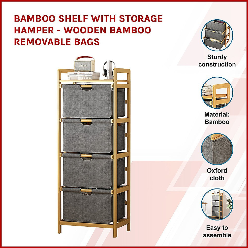 Bamboo Shelf with Storage Hamper - Wooden Bamboo Removable Bags