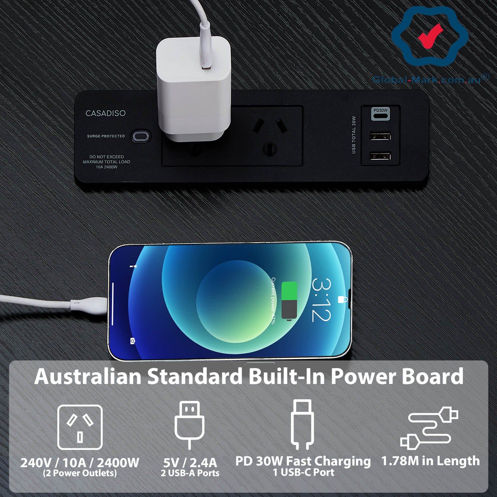 • Certified Electrical Safety: As the only furniture brand with Australian Global-Mark electrical safety certification, this desk guarantees safe electricity usage. It includes PD 30W fast charging, USB Type-C support, and safeguards against lightning and power surges. The 1.78m flame-retardant cord caters to your power needs with assurance.
