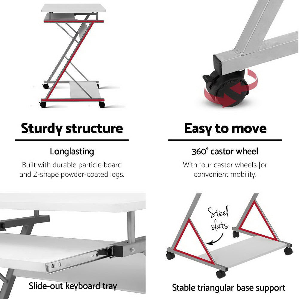 Artiss Metal Pull Out Table Desk - White
