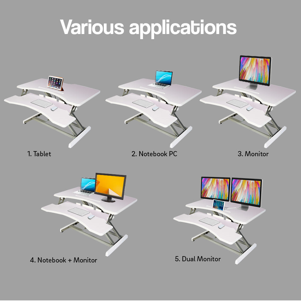 The FORTIA Sit Stand Laptop Desk Riser is an ergonomically designed height adjustable workstation which allows you to find a healthy balance between standing and sitting. Perfect for use in your home office or in the workplace, you can instantly and easily alter your position to sit or stand, maximising your comfort and attention levels during work or study time.