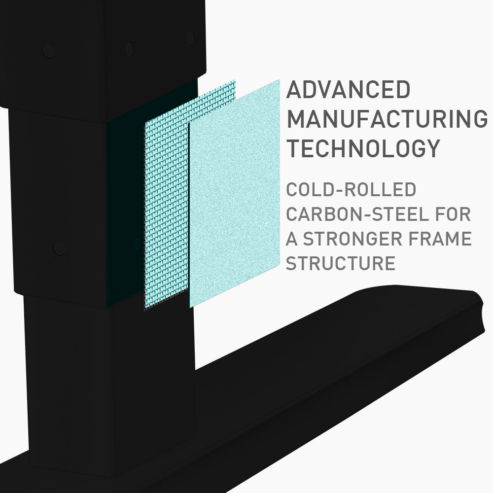 Unlike other brands, the FORTIA boasts a dual motor system. With the supplied control panel you will experience fast, smooth and quiet operation, with the added benefit of superior durability and up to 120kg capacity. Furthermore, unlike other models on the market, the motors are neatly and safely enclosed into the frame.