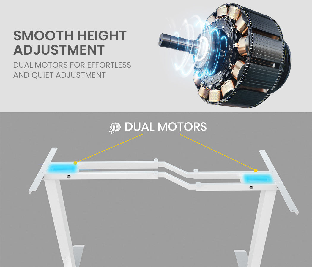 The FORTIA electric sit/stand desk features a double motor system which means height adjustment can smoothly and quietly take place in only around 10 seconds! The motors are strong enough to lift a massive 80kg, so you can look forward to superior durability. Plus, unlike other models on the market, the motors are neatly and safely enclosed into the frame.