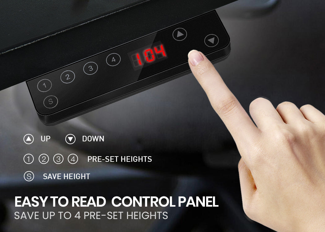 You can program up to 4 preset heights via the control panel, or adjust to any specific height, right up to 120cm.