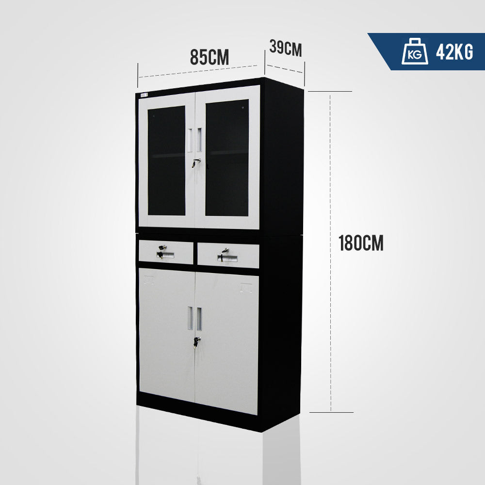 Designed and built with security in mind, the FORTIA 4 Door + 2 Drawer Storage Cabinet has been constructed from high-grade steel, with each shelf being capable of holding as much as 20kg. There are also 2 drawers conveniently positioned in the middle which are ideal for storing smaller items and other office supplies.