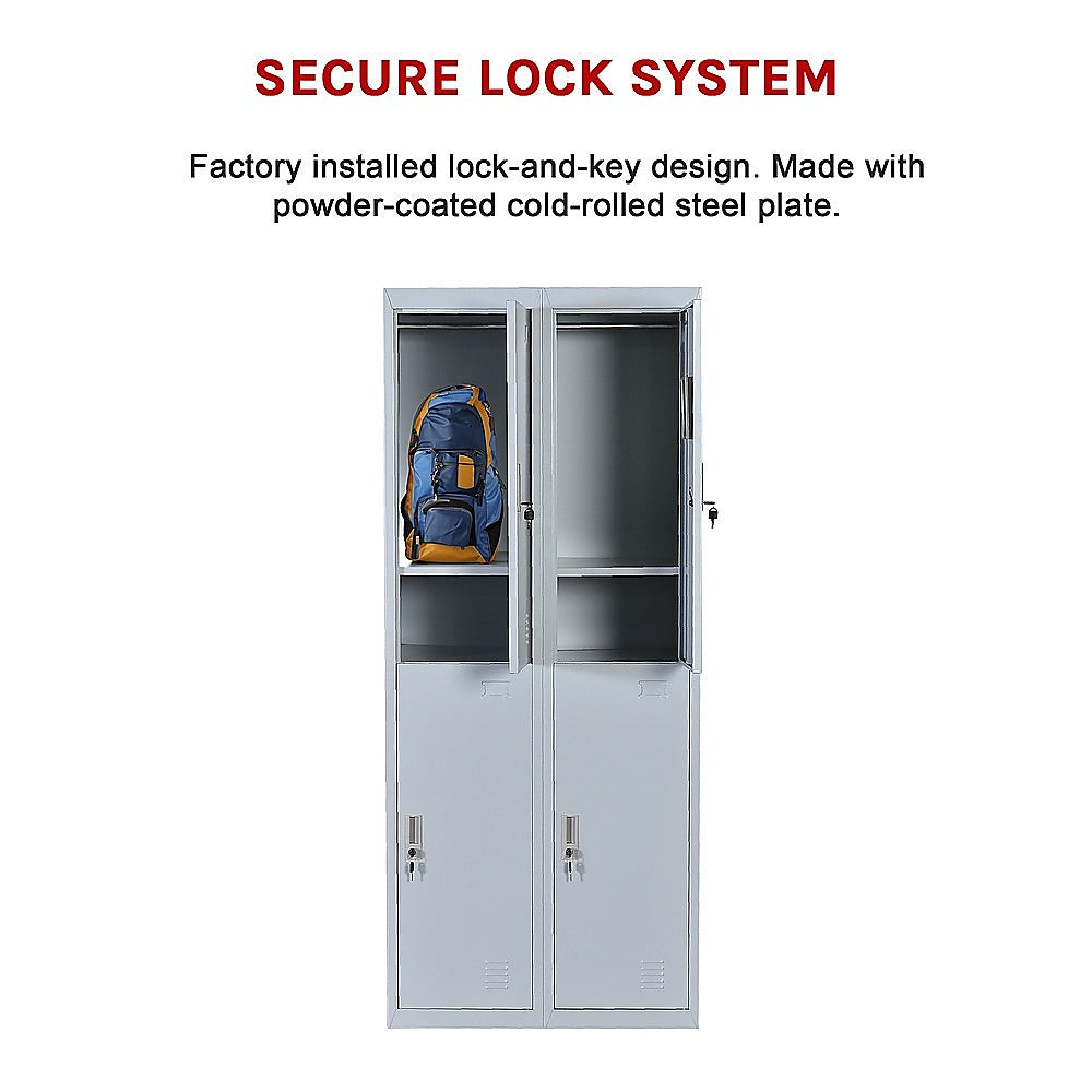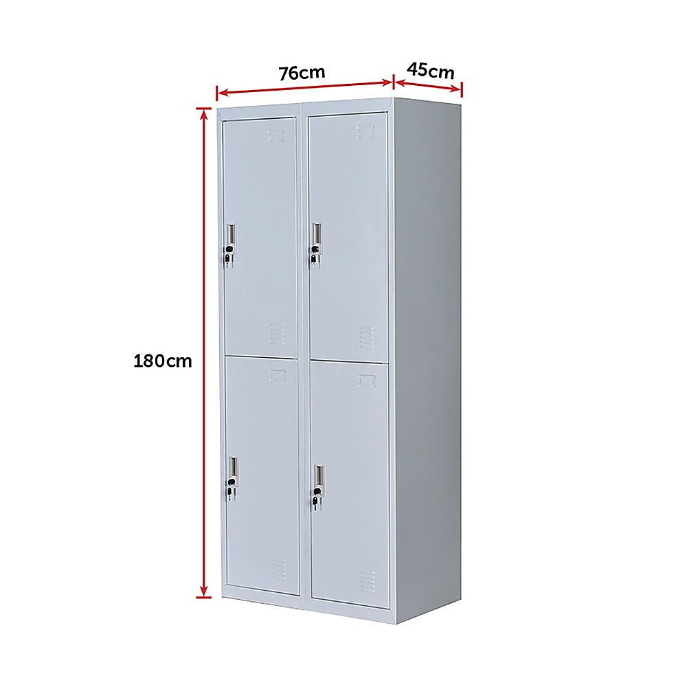 Four spacious lockers are arranged in a compact 2 x 2 grid. They're perfect to store a change of clothes, keep valuables, and store other a variety of personal belongings short-term or long-term.