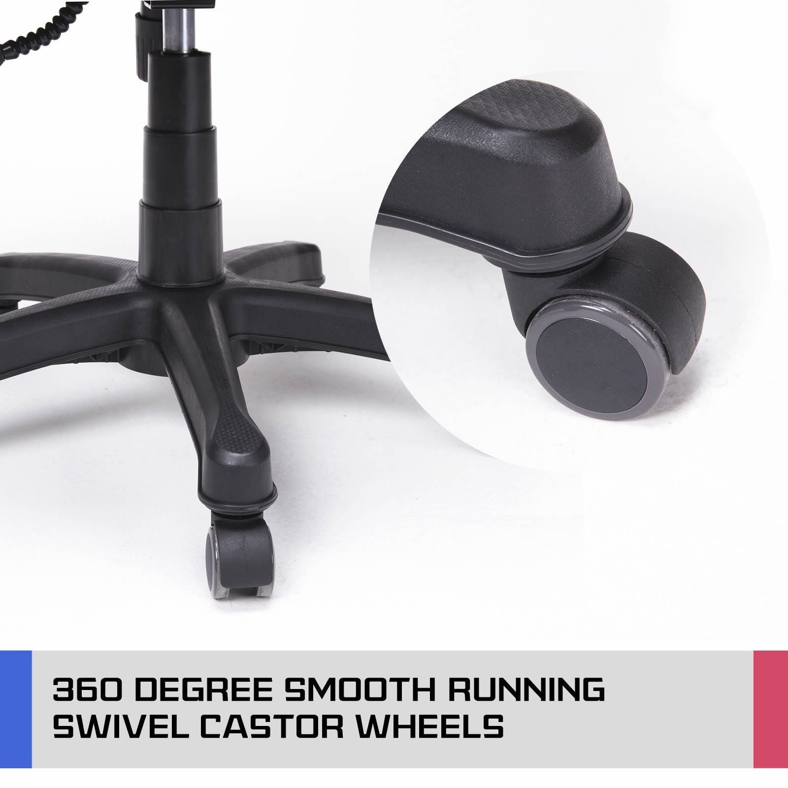 The chair frame is made of high-quality polypropylene and it is sturdy and durable. In order to add comfort, the arm rests are designed to comfortably accommodate your arms and are smooth and high-quality. The PU leather on the chair is designed to disperse heat and improve ventilation so heat accumulation can be minimised to help skin breathing and comfort. The seat pads are made of premium polyurethane, which was engineered in a way that it compresses well but also does not crush it to the point that it gets hard. The chair comes with 360 degree swivel castor wheels, and moving back and forth is very smooth! The adjustable height gas cylinder is made of solid steel, so you can be confident that this chair is durable and will give you a long service life!