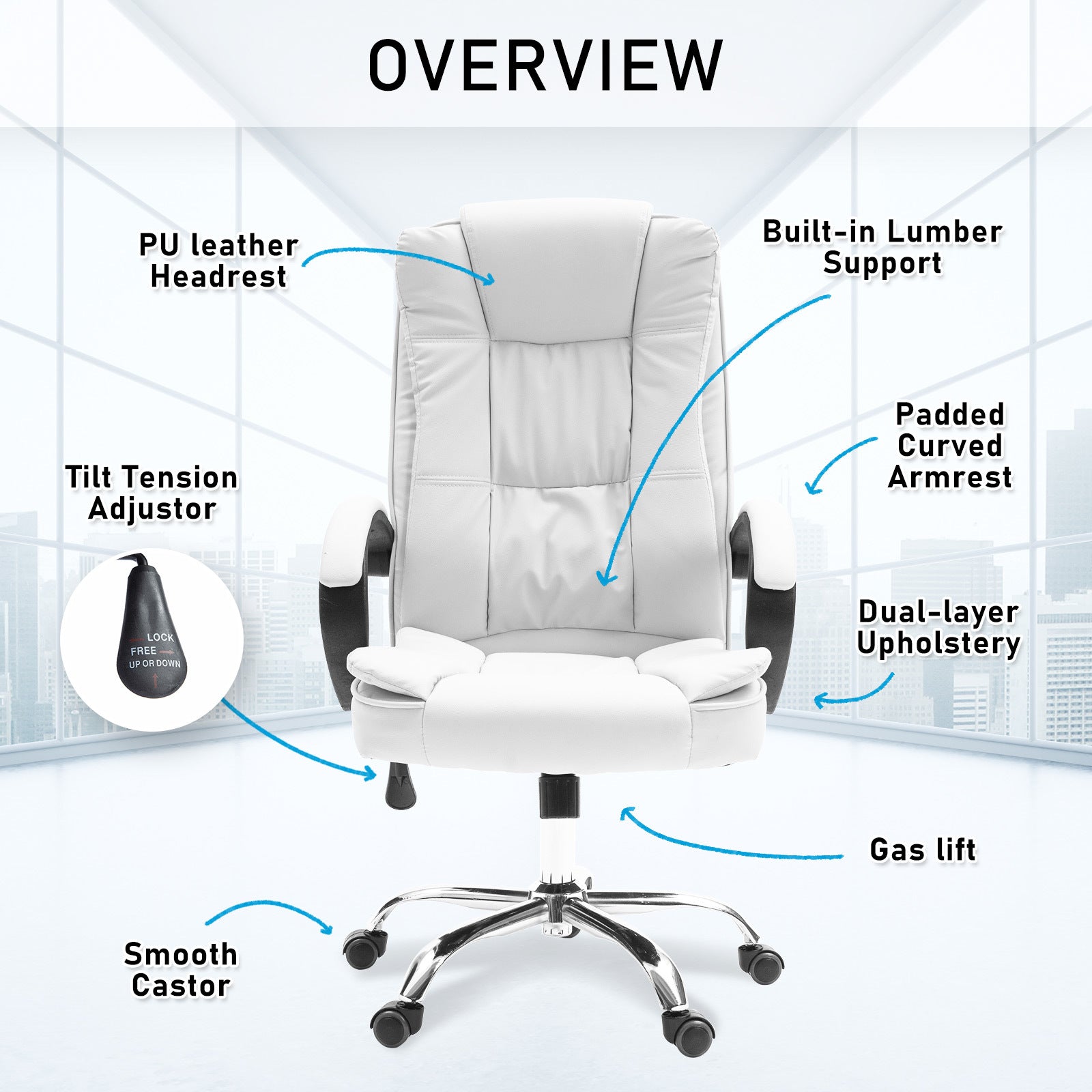 La Bella Executive Office Chair Sage Dual-Layer Seat Tilt Computer Gaming Work - White