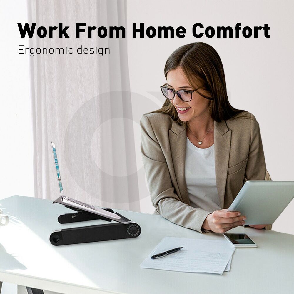 This multifunctional laptop stand has adjustable features to rotate the surface 360 degrees and you may lock it at any angle you prefer. With the non-slip buckle, you do not have to worry about your laptop sliding off when you are adjusting it.