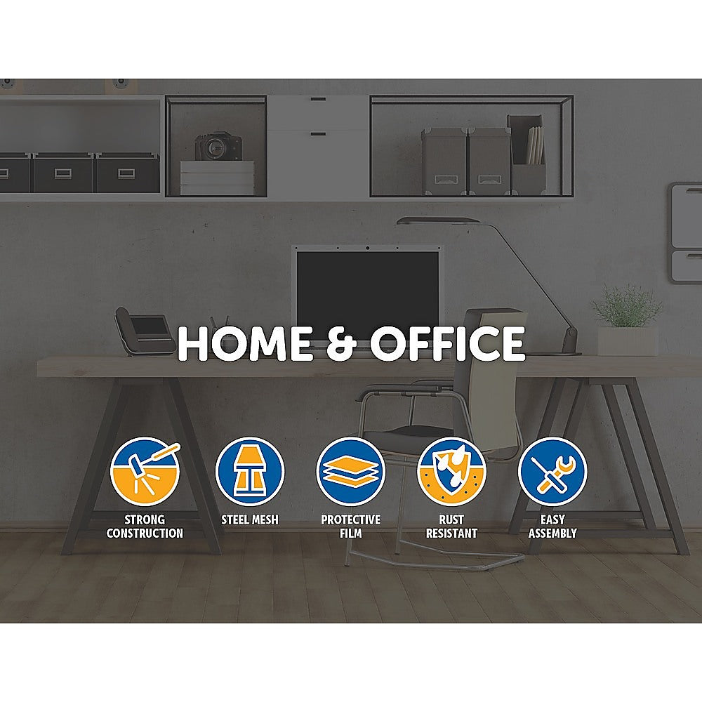 Its steel mesh design in black works well with any office décor. It's easy to install with the included wall-mounting hardware.