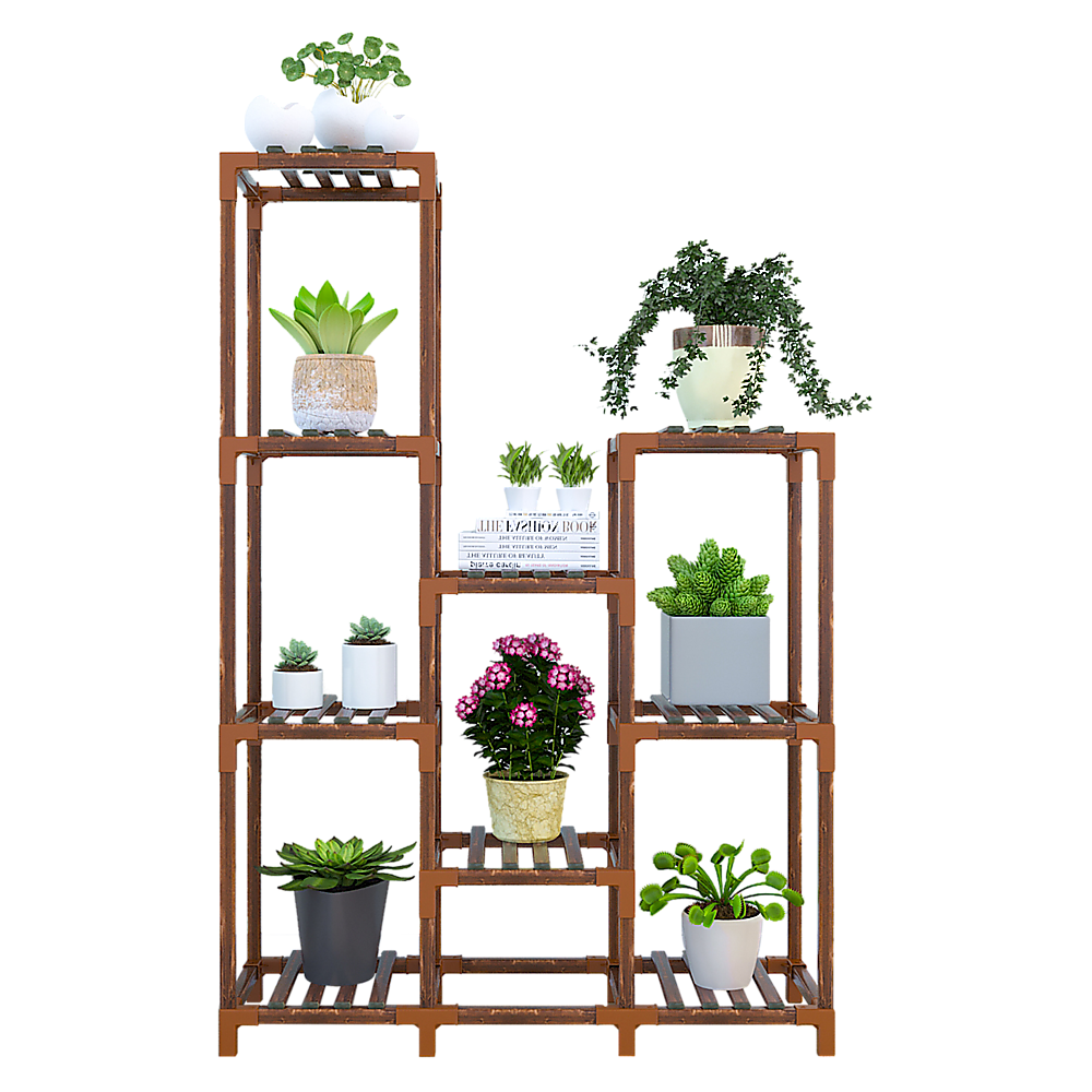 Indoor Outdoor Garden Plant Stand Planter Flower Pot Shelf Wooden Shelving - 9 Shelves