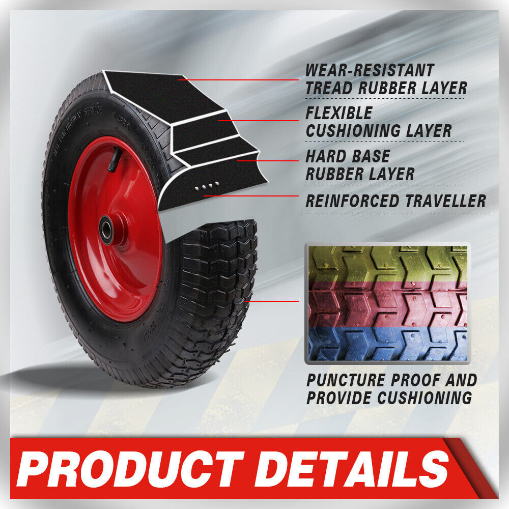 16" Wheelbarrow Trolley Wheel 4.80/4.00-8 Pneumatic Tyre 16mm Bore Tire Steel