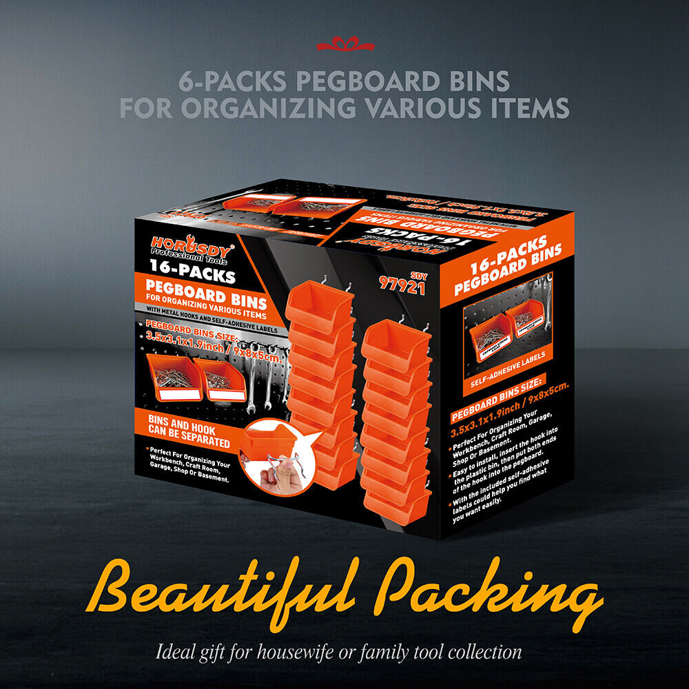 Each pegboard bins box size: 3.5"x3.1"x1.9".