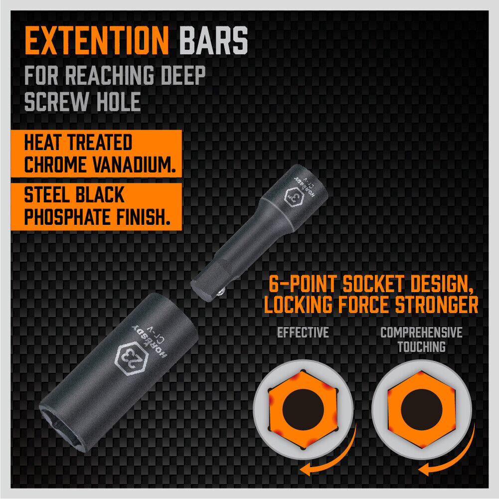 3 x Socket Extension: 7.7cm, 12.5cm & 25cm (Long)