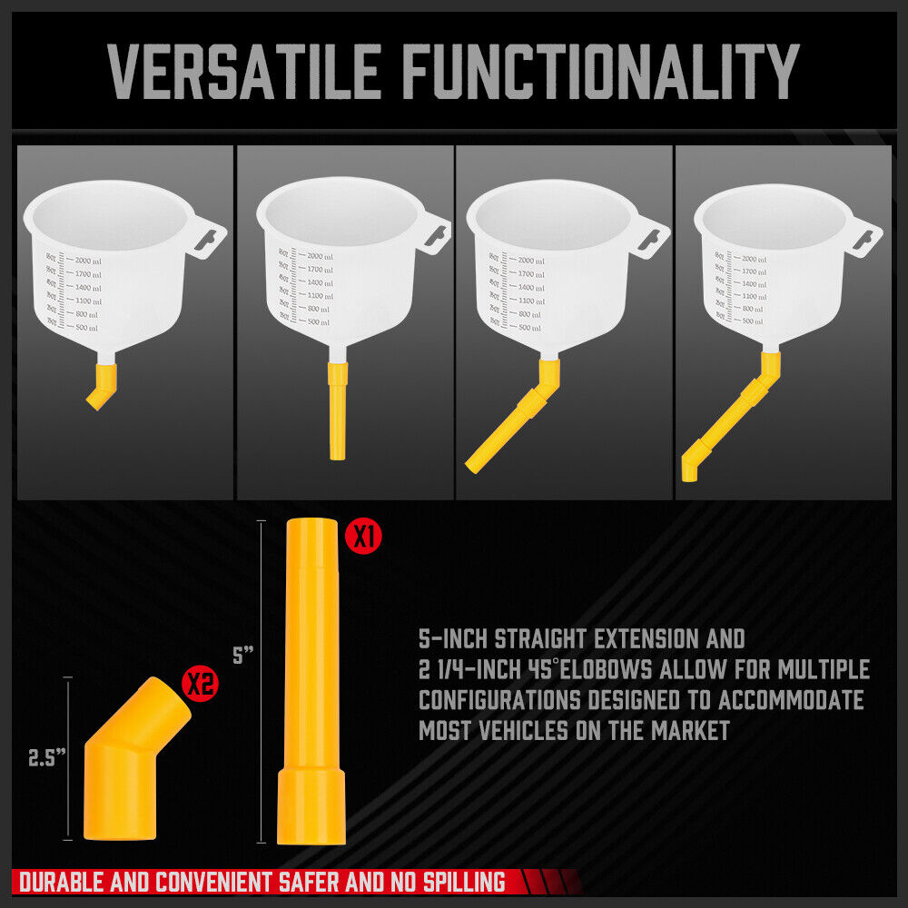 The 19Pc Spill-Proof Radiator Coolant Refilling Funnel Kit is designed for convenient and safer coolant refilling. It eliminates spills and ensures a clean and efficient process. The kit features versatile functionality with straight extensions and 45° elbows to accommodate most vehicles on the market. The funnel comes with a scale for precise measurement and the included fluid stopper prevents drips and air bubbles. With clear instructions and a variety of adapters, this kit is suitable for both domestic and imported vehicles. The durable construction and convenient design make coolant refilling hassle-free.