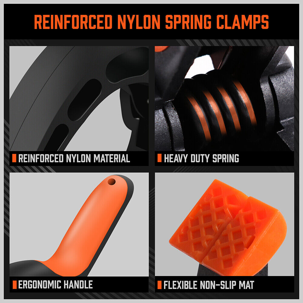 20Pc Spring Clamps Set Heavy Duty Nylon Clips 3 Sizes Non-Slip Grip TPR Handle