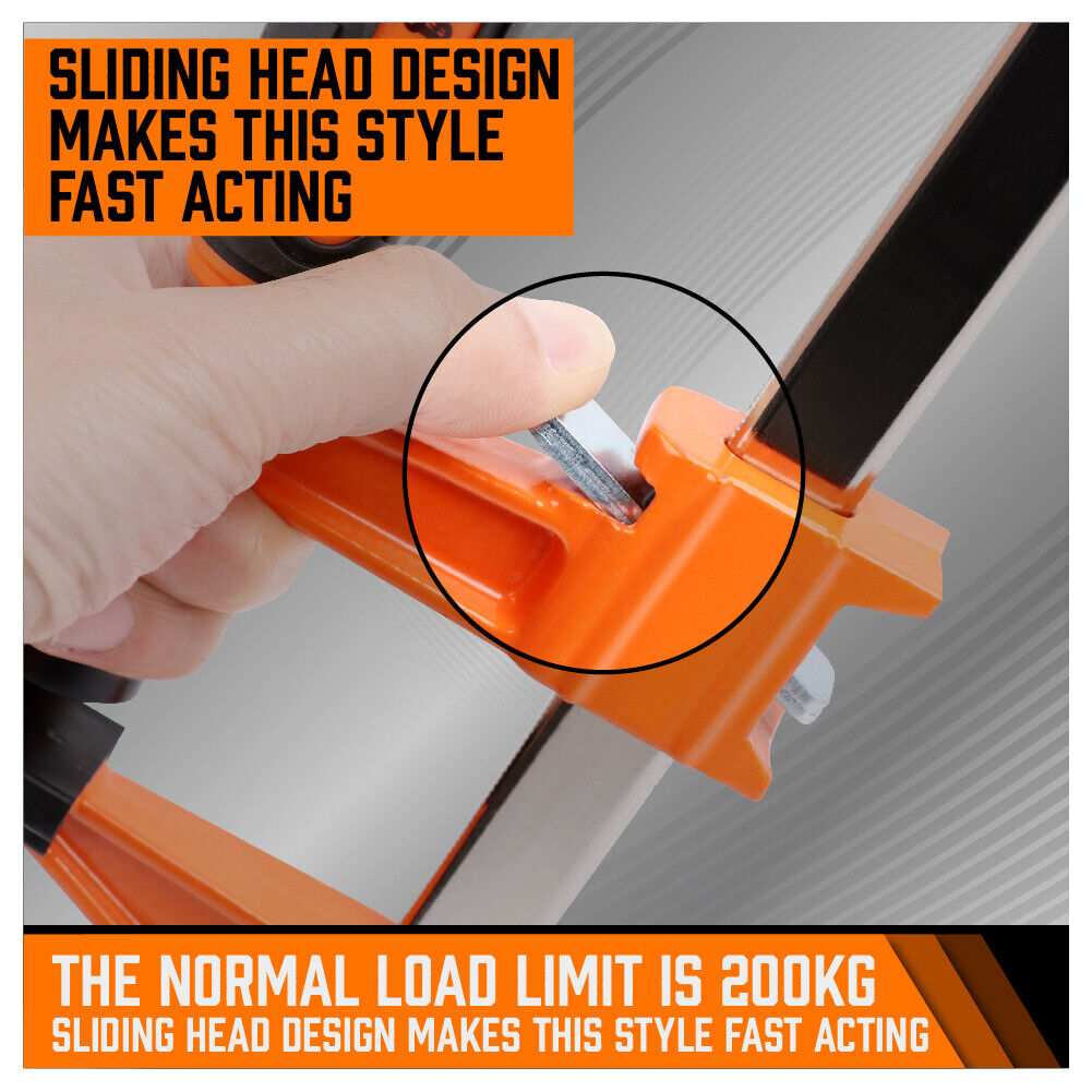 2Pc F-Clamps 60x300mm Heavy Duty Steel Bar Quick Release Grip Handle Woodworking