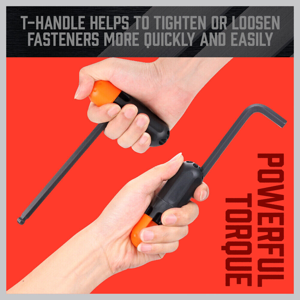 Introducing our 36-Piece Hex Key and Tamper Proof Torx Key Set, designed to meet all your fastening needs. Made from heat-treated S2 steel with a manganese phosphate finish, these keys are durable and built to last. The set includes both metric and imperial sizes, with chamfered ends for smooth insertion and reduced wear. The color-coded housing provides instant measurement identification, and the hinged case opens flat for easy access and visibility. The T-handle design allows for quick and efficient tightening or loosening of fasteners, while the ball hex ends enable a 25-degree entry angle for reaching around obstacles. The set also includes temper-proof Torx wrenches and a universal handle for added versatility. Conveniently arranged in a cloth bag, this set is suitable for various working environments.