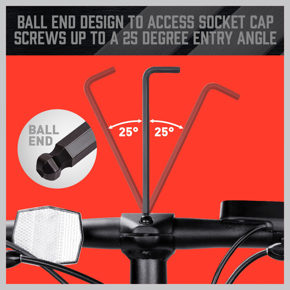 13 x hex key wrenches (Metric): 1.27, 1.5, 2, 2.5, 3, 3.5, 4, 4.5, 5, 5.5, 6, 8, 10 mm