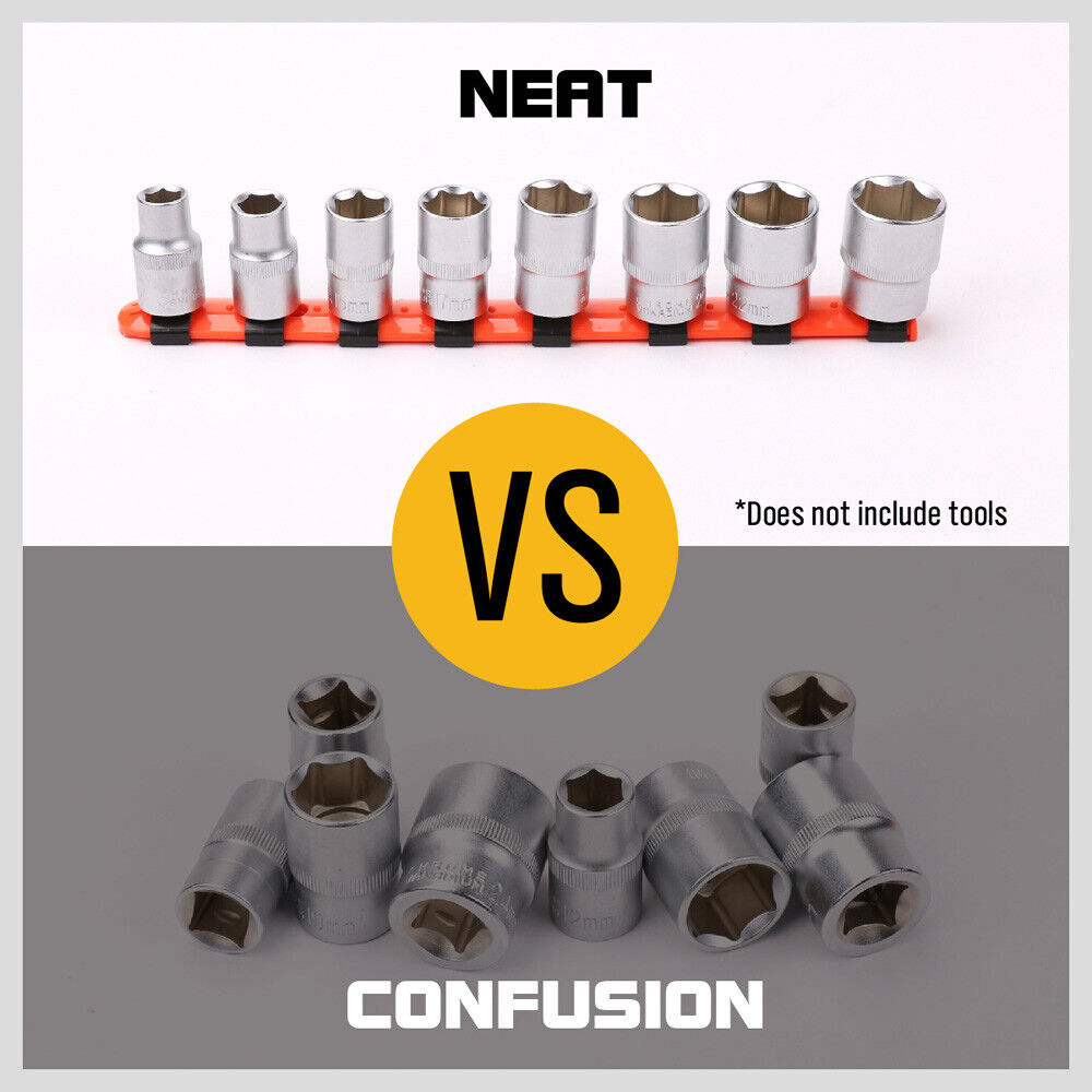 Allows you to organize all your square drive sockets by pressing them onto the spring steel socket clips