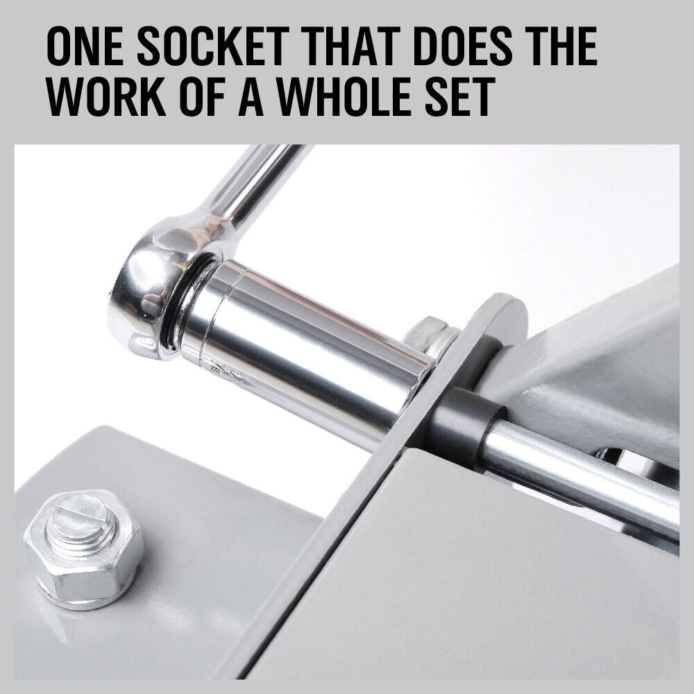 The revolutionary socket design automatically adjusts to fit any nut or bolt from 1/4" to 3/4" , 7-19 mm! Works great on metric, standard, wing nuts, broken nuts, stripped nuts, eye bolts, square nuts, hexes and more! Save Time! Save Work!