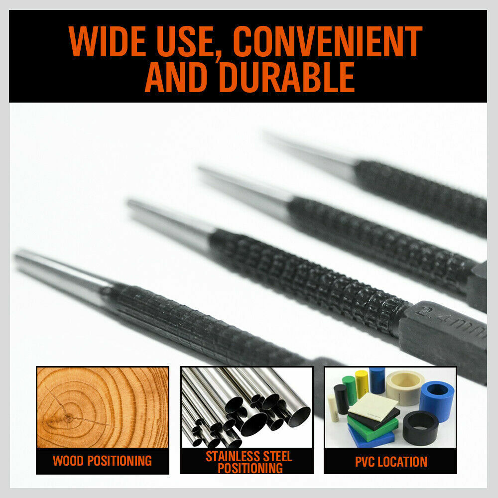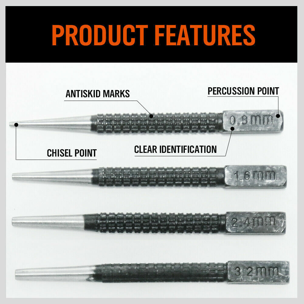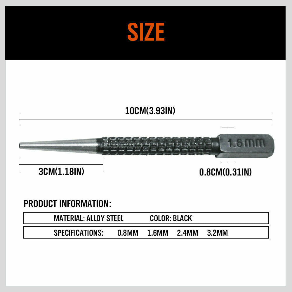 4Pc Nail Punch Set Heavy Duty Solid Steel Hole Punching Leather Gasket 0.8-3.2mm