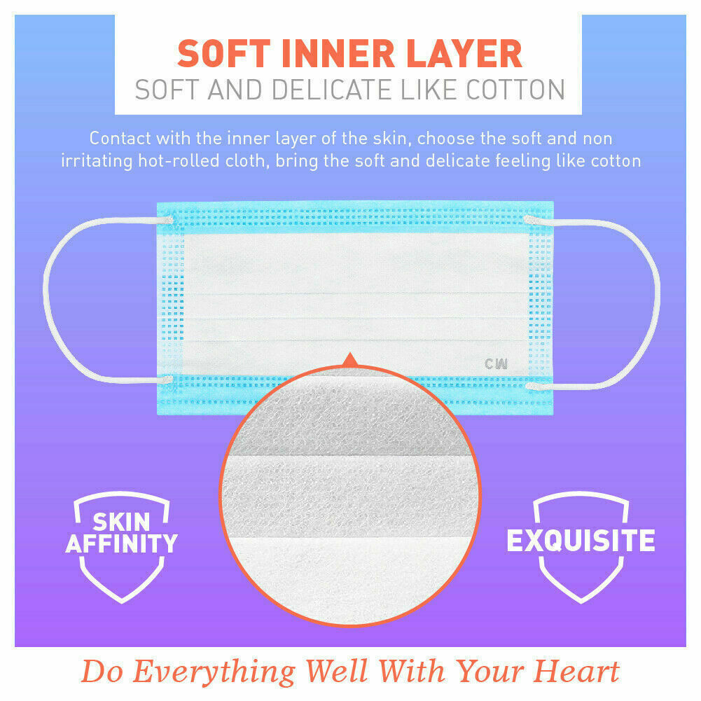 50Pc Face Masks General Daily Protection 3-Layer Anti Bacterial Filter Au Stock