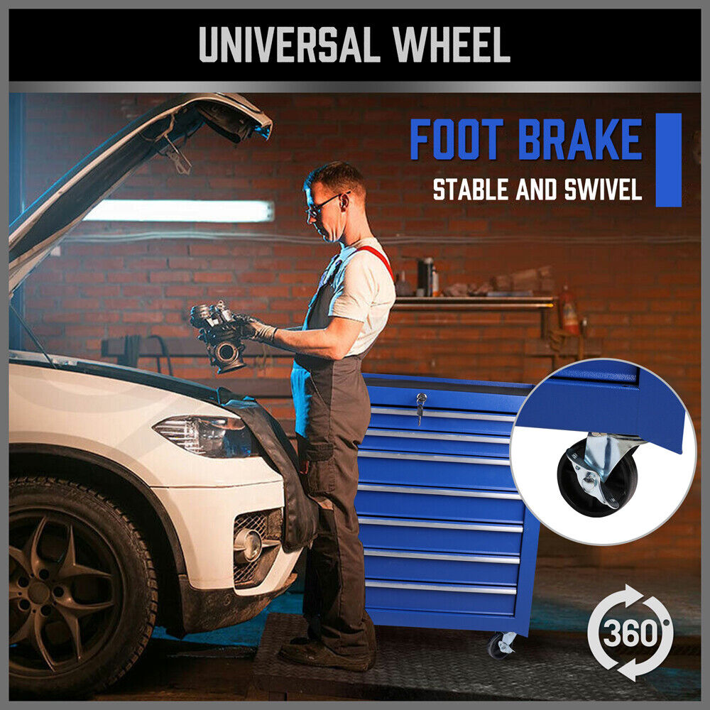 Keep your tools organized and secure with the HORUSDY 7 Drawer Tool Trolley Cabinet. Constructed from powder-coated steel, this tool trolley features 7 drawers designed to accommodate a variety of tool sizes. The smooth ball-bearing slides and upgraded cam locks ensure easy operation and enhanced security. With omni-directional casters and a sturdy handle, this trolley provides convenient mobility and smooth handling. Each drawer is lined to protect your tools and prevent movement. Experience superior organization and efficiency with this reliable tool storage solution.