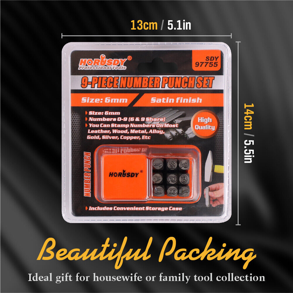 9Pc 6mm Number Stamp Punches Set Metal Plastic Wood Leather With Storage Case