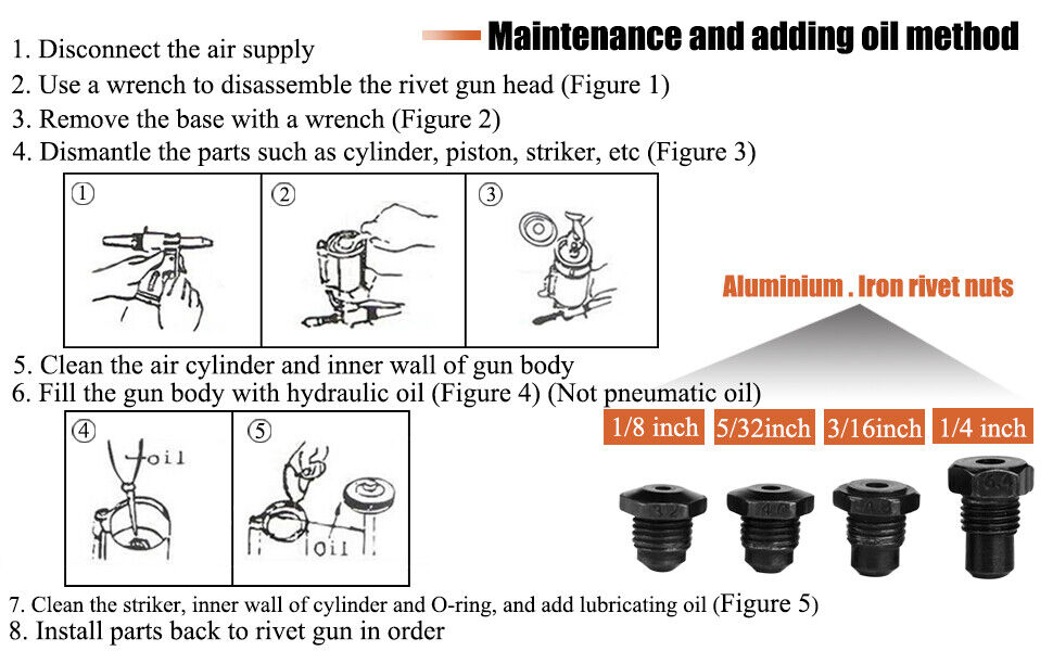 - Suitable for various sizes of the Aluminium, Iron rivet nuts: 3/32-inch(2.4mm), 1/8-inch(3.2mm), 5/32-inch(4.0mm), 3/16-inch(4.8mm)