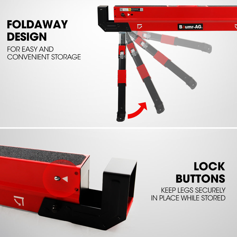 This pair of Baumr AG Heavy-Duty Saw Horses are built from premium galvanised steel. Powder-coated and zinc plated surfaces offer corrosion resistance and help to withstand those day-to-day knocks. These rugged sawhorses have a massive combined load capacity of up to 1180kg, which is the highest in their class!