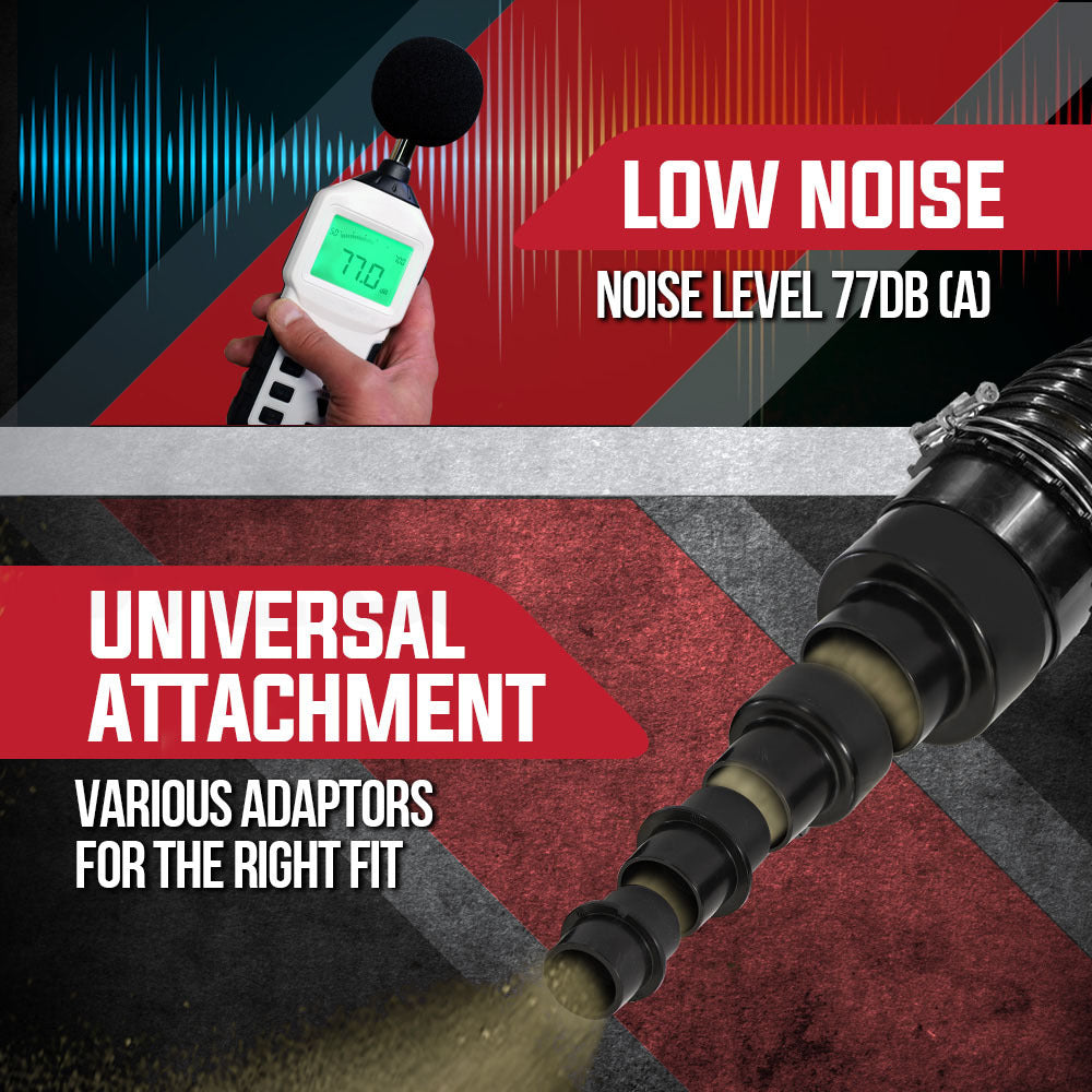 With a powerful 1100W motor, the Baumr-AG Vacuum is highly effective in performing high volume cleaning, and is a far simpler alternative to an entire fixed dust collection system. The rugged yet lightweight design and strong handle ensures portability, and the generous 50L tank allows for extended cleaning periods with less frequent emptying! Just attach the generous 2m flexible hose to your power tools via the universal attachment which has various adaptors for the right fit.