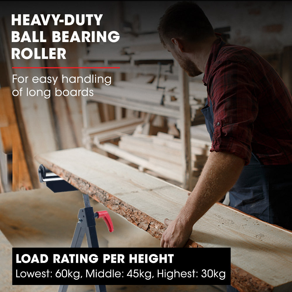 This Baumr-AG Roller Workstand sets the standard in heavy-duty roller stands. Its quality construction of high quality extruded steel offers reliability under continuous use. The stand is adjustable from a height of 69cm to 108cm from floor to the roller top making it ideal to pair with just about any table saw or mitre saw.