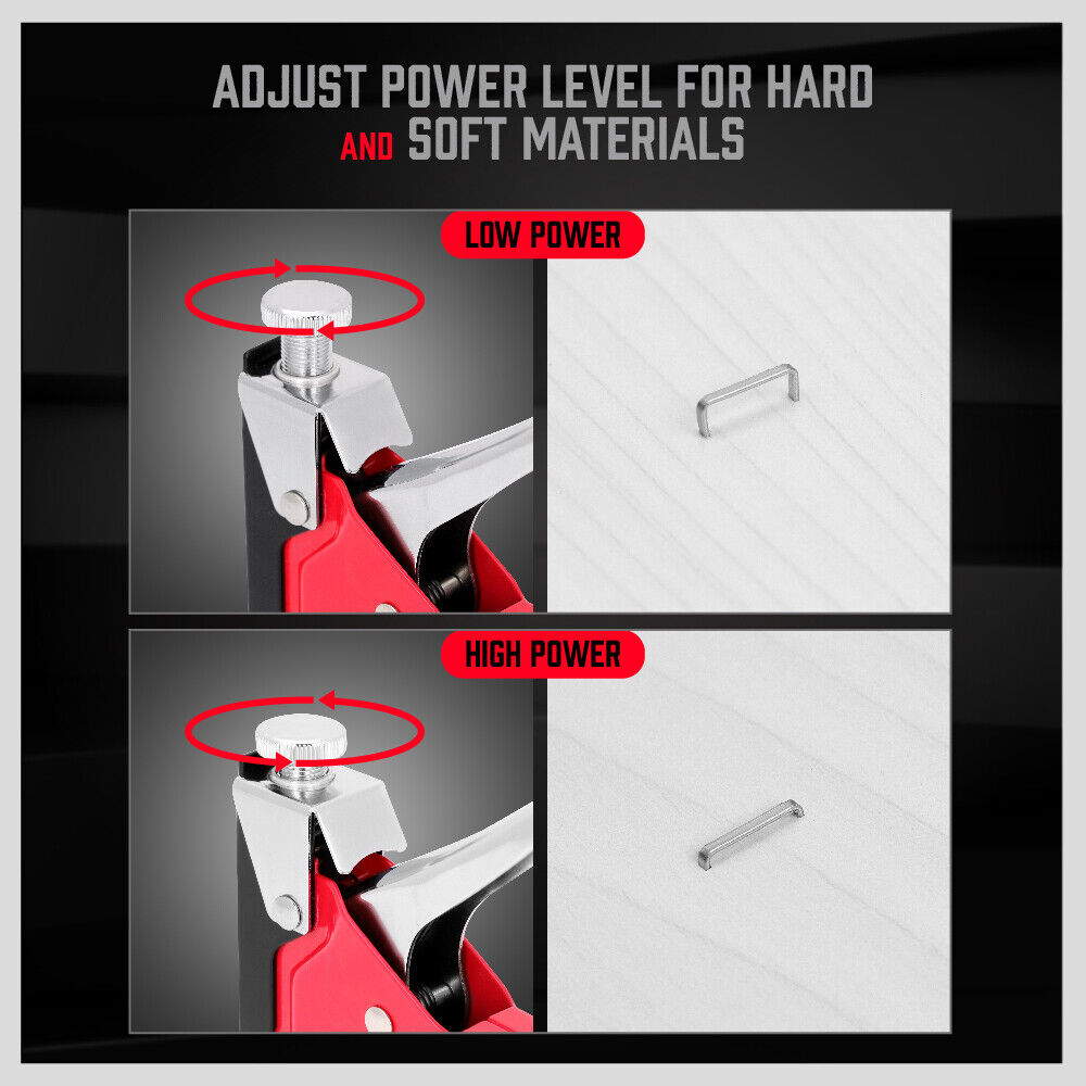 • This set contains a 2 in 1 stapler can be used for such as furniture binding, cupboard nailing, wardrobe tacking and any other stapling works.