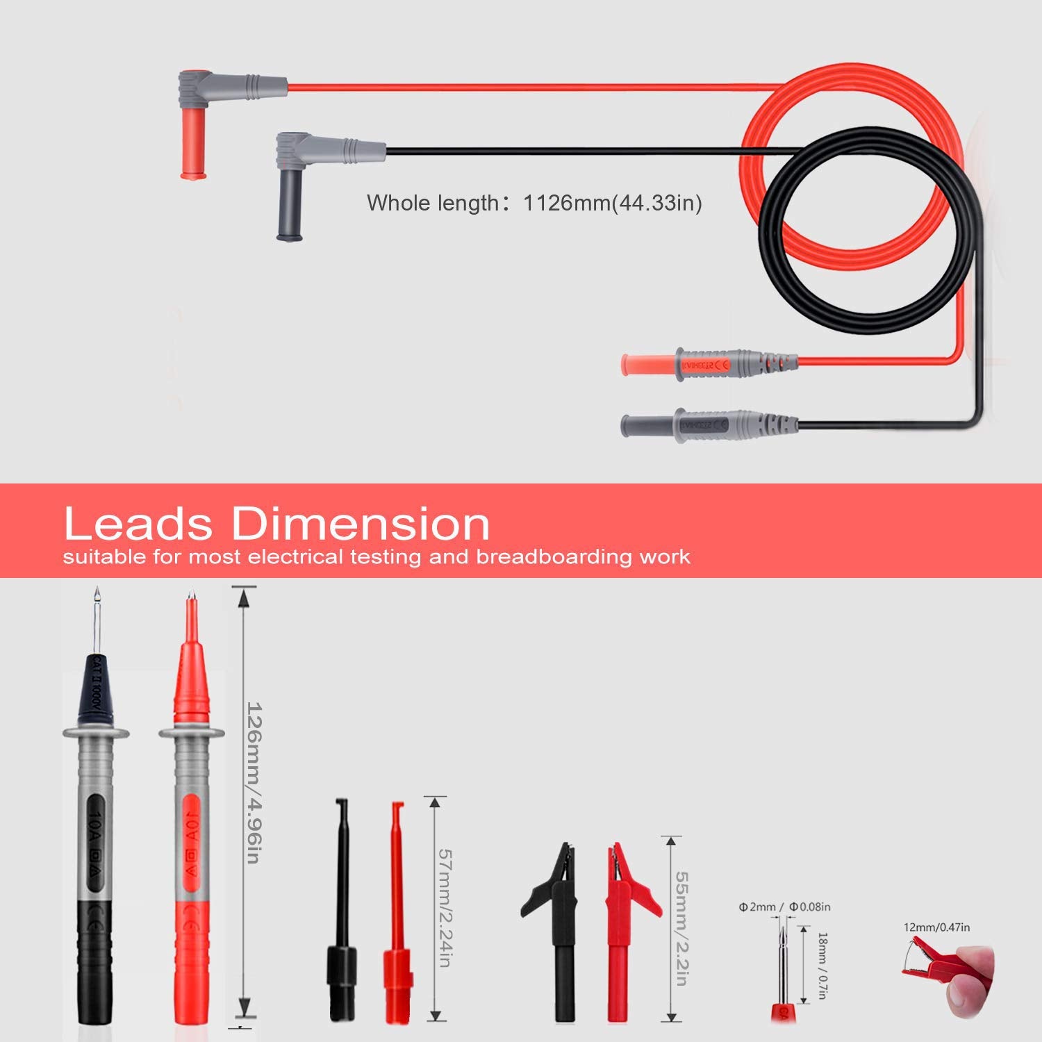 • HIGH-QUALITY MATERIAL - This test leads kit is made of silicone double insulated which is durable, non-toxic, environmentally friendly, will not be stiff after 24 hours in the refrigerator; with the 48" wire is perfect for any multimeter and clamp meter.