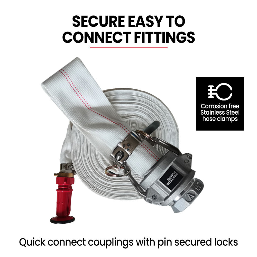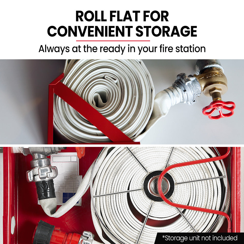 This simple and affordable fire security solution is a common sense investment to help protect the valuable people and assets in your life. Put your mind at ease and get the Protege 36m Canvas Lay Flat Fire Fighting Hose today.