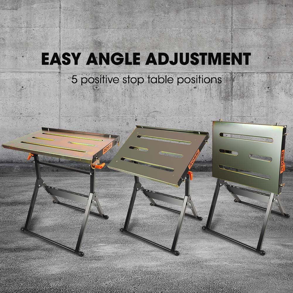 The ROSSI Welding Table is rugged yet lightweight, foldable and easily transportable. The powder-coated steel frame with reinforced trestle style legs boasts an impressive weight capacity of 150kg, and rubber feet further add to stability.