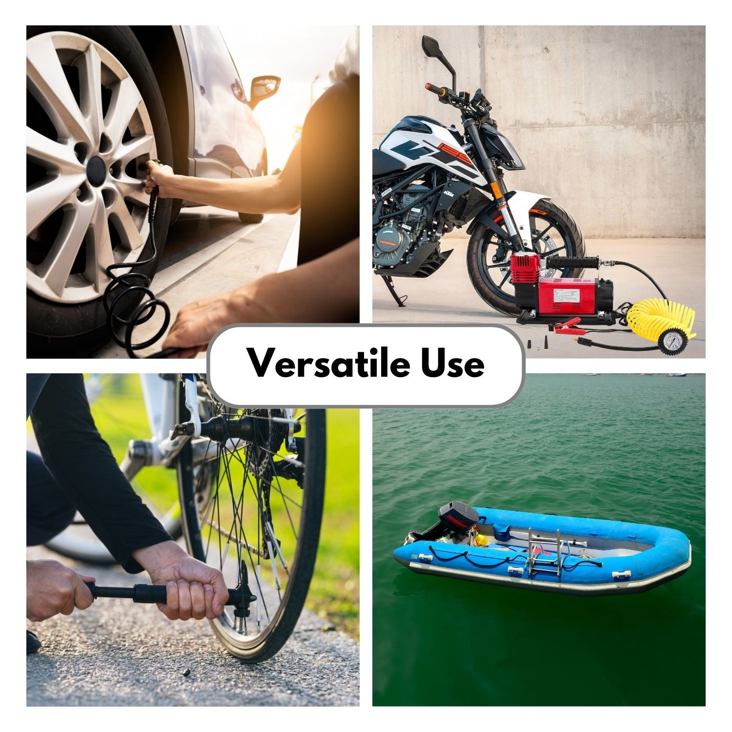 Comprehensive Package: Comes complete with essential accessories, including crocodile clips, bonus head attachments, bleed valve, tire plug kit, and a user manual, making it a comprehensive and user-friendly air compressor kit.