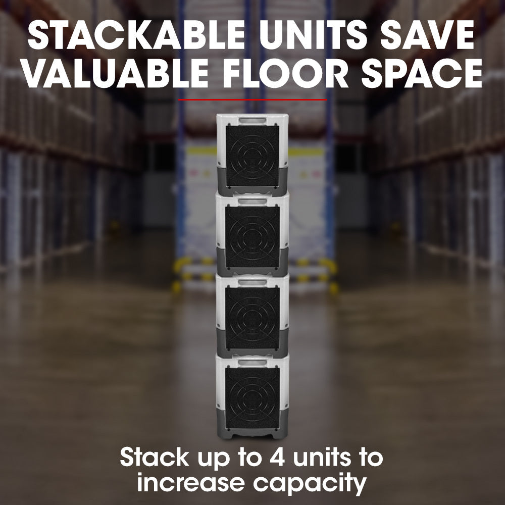 But that's not all - the Baumr-AG range boasts a range of user-friendly features, including a wheeled and stackable hard polymer shell, self-monitoring system, duct connection option, and automatic humidistat control with LED. It even has auto defrost and purging, digital humidistat, drain indicator, timer and money-saving washable filter.