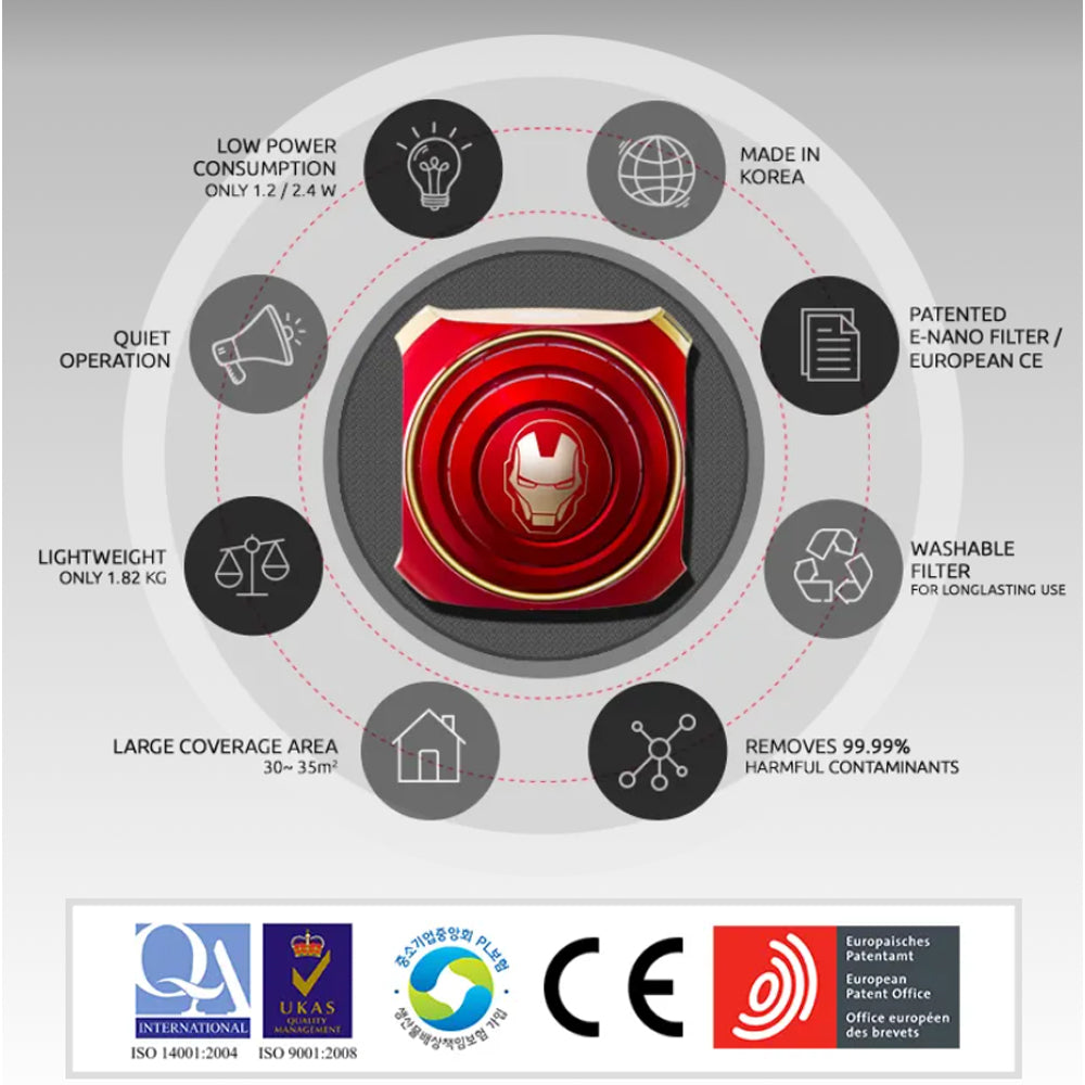 The Marvel Habanero 2 air purifiers are designed to be compact and portable while maintaining its air purifying power. Don't be fooled by their small statures - these superhero air cleaners provide strong and efficient air purification performance with dual front and back large e-Nano air filters that can clean the air of pollutants as small as 0.03um in size.