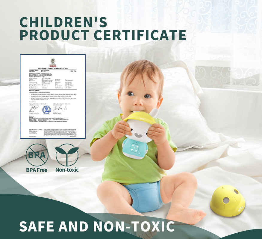 • ✨【Chewable Silicone Rabbit Ears】The bunny is made of food-grade silicone with ears and small yellow caps, designed for babies to chew and bite during teething, providing relief from discomfort and bringing joy to children. Additionally, it holds FCC, CE, RoHS, and CPC certifications. Its ABS material and hidden screw design ensure it is safe, environmentally friendly, sturdy, durable, and resistant to falls.